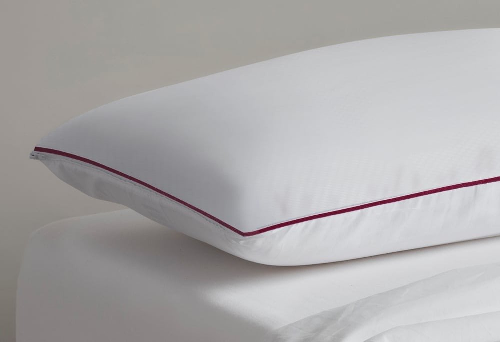 Almohada Duna Velfont confeccionada íntegramente con microfibra de gran suavidad y acabado con ribete de color granate.