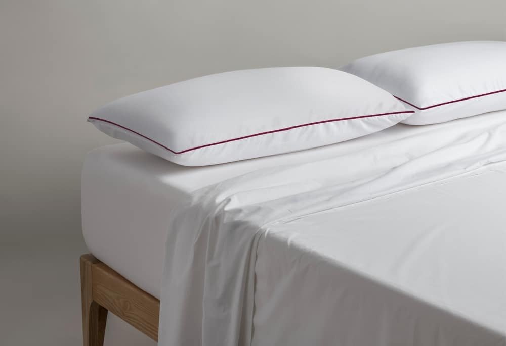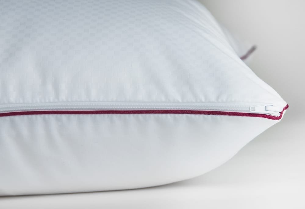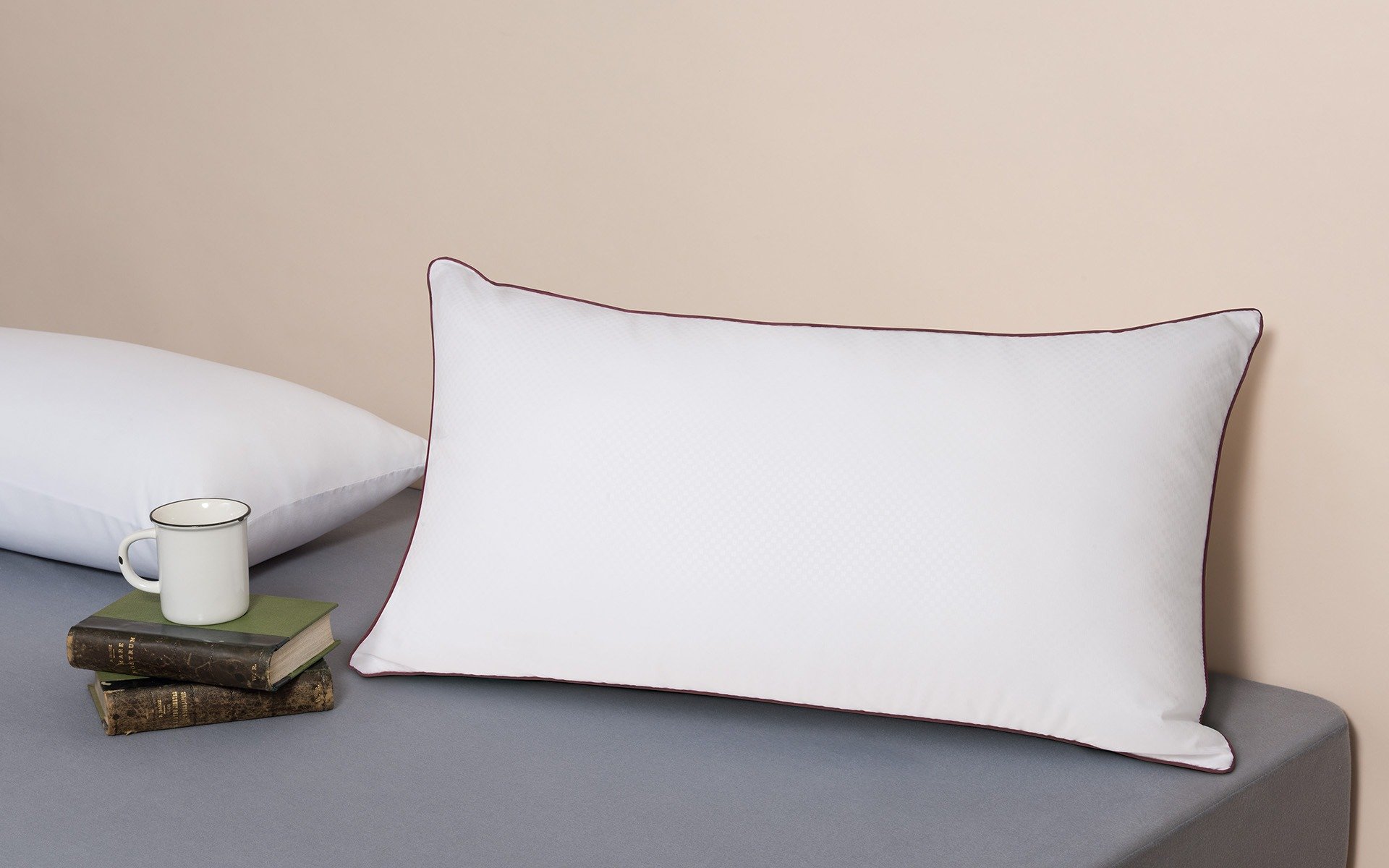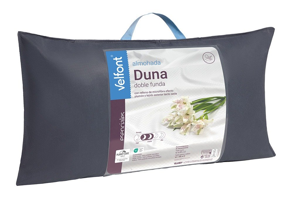 Almohada de doble funda y relleno de microfibra con efecto plumón.