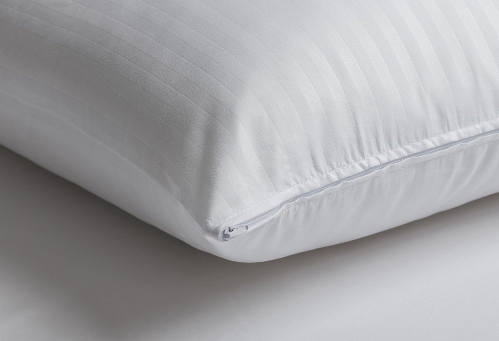 Funda de almohada confeccionada con tejido cutí 100% algodón y cierre con cremallera.