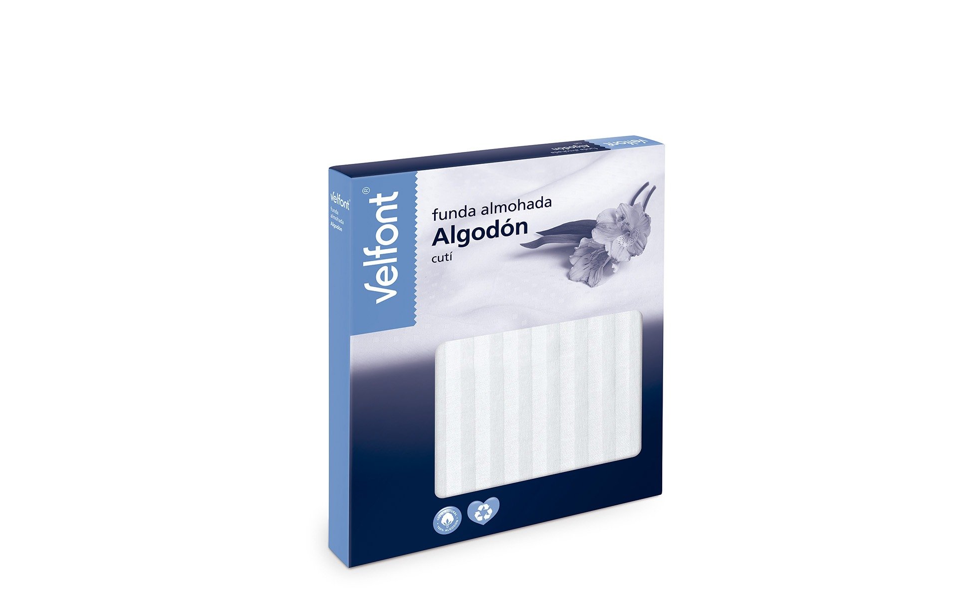 La Funda de almohada Raso Labrado Velfont está confeccionada con tejido 100% algodón con un bonito diseño listado. Garantiza una completa higiene de la almohada, ya que la protege de forma integral contra suciedad y polvo manteniéndola en perfectas condiciones durante más tiempo.