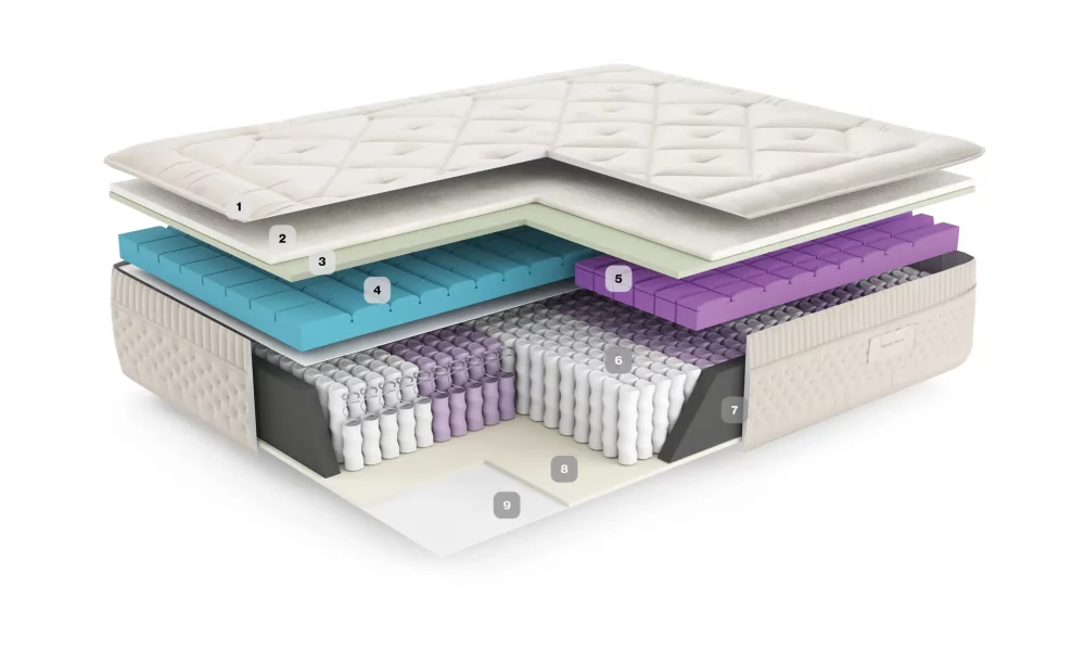 Colchón de muelles ensacados con firmeza personalizable y acabados naturales.